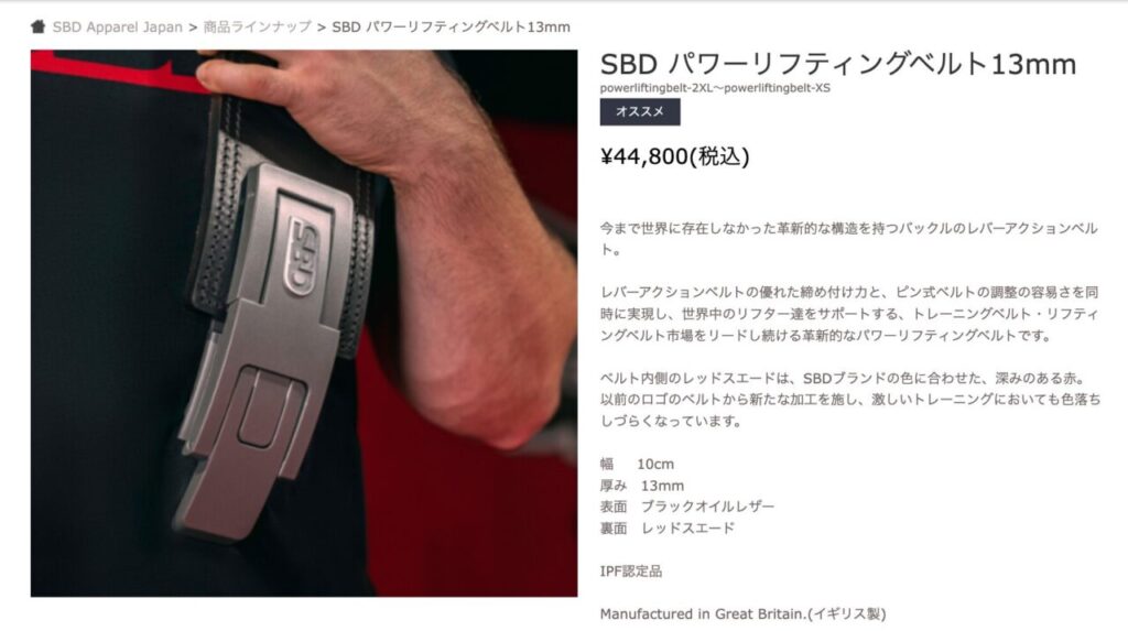 パワーチューブのベルトと迷って、SBDのパワーベルトを購入した。4万円。高い。