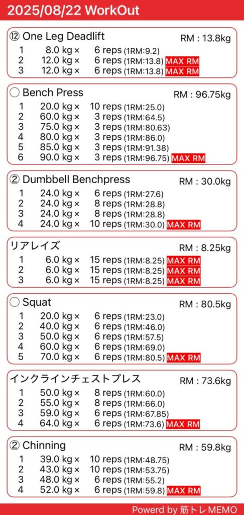 2025/08 | 10日 | 90kg x3rep | 97.5kg | |