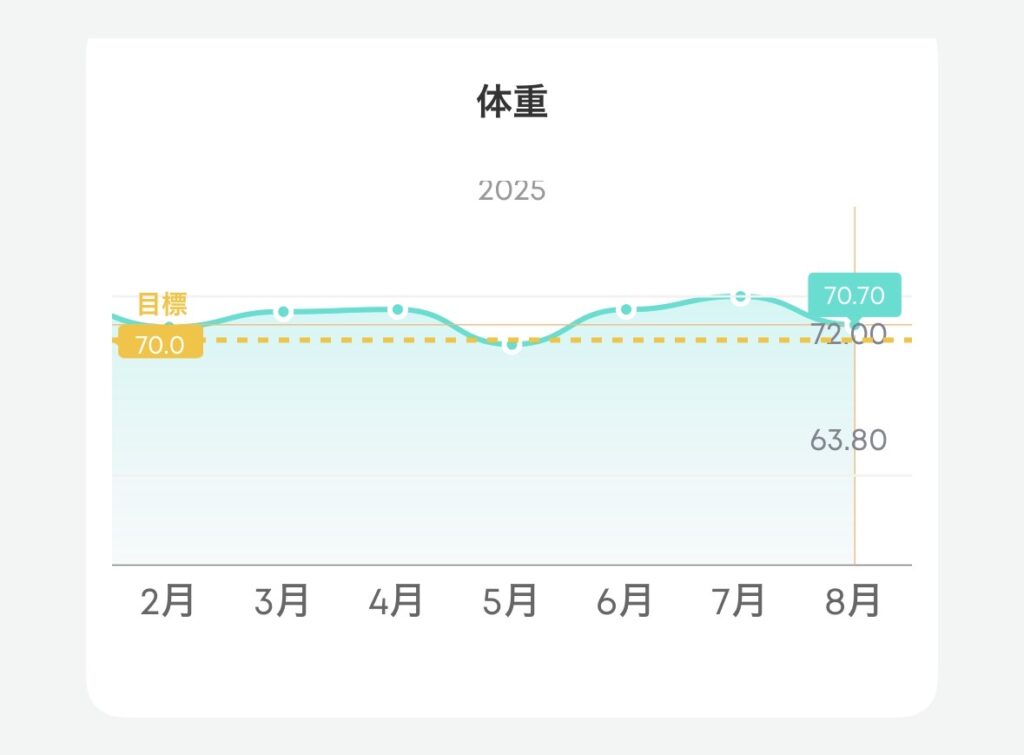 Ankerの体重計で毎朝計測し、アプリで管理している。月単位で見ると体重が少なめに記録されるような気がする(ふつうの人にはその方が嬉しいからか)。