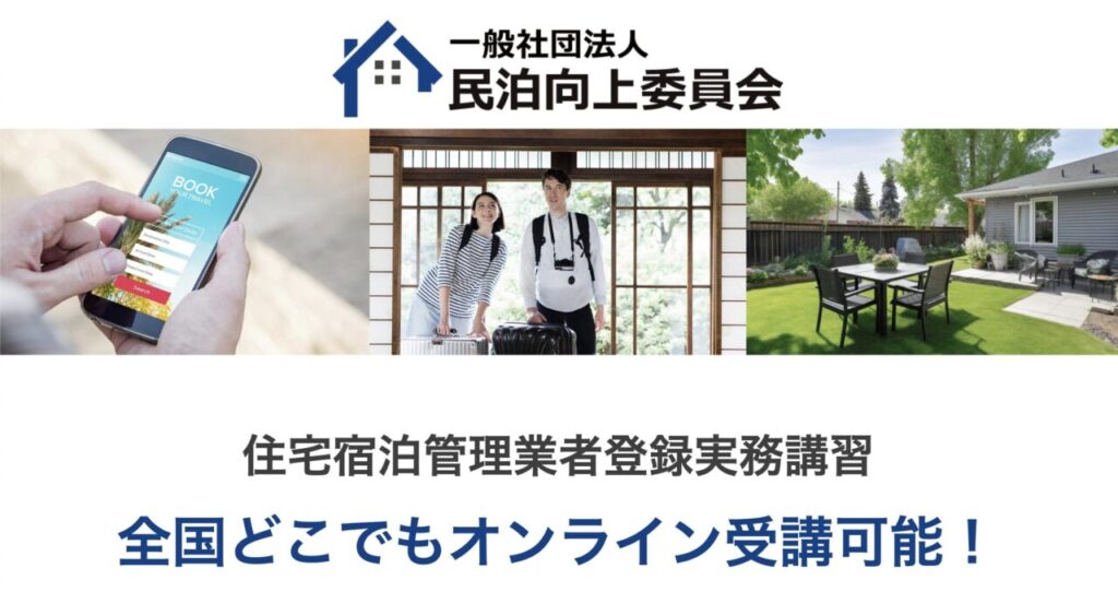 「通信講座20時間+集合講義7時間」の講習を受講して修了試験に合格すると、住宅宿泊管理業者として登録できるようになる。