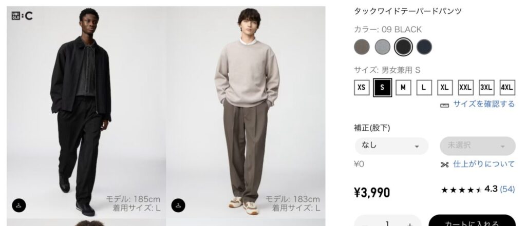 黒色のキレイめパンツを探していてドンピシャ。Sサイズで、さらに裾上げしている。足元がダボっとしないように。