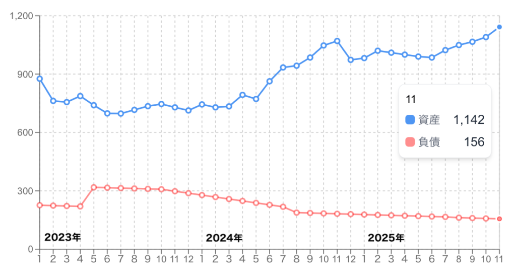 所有戸建ての資産の価値が変わらない前提では、負債の減少分だけ純資産は増えていく。