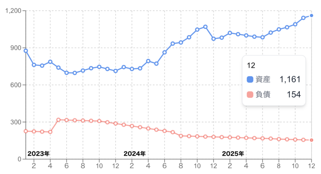 2025年の忙しさで仕事ができればこのまま資産が増え続けていくのがわかった。定点観測は大事。